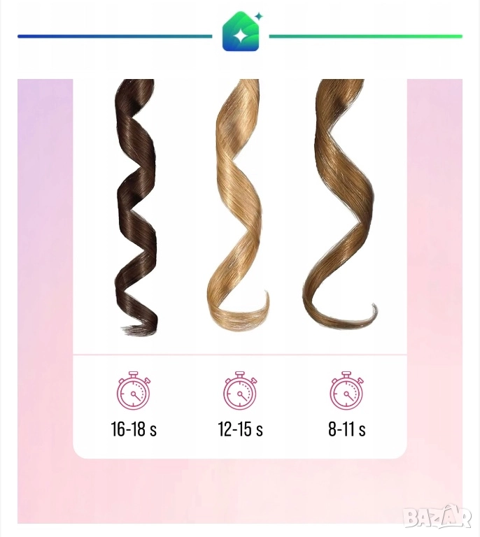 C. Ако искате пружиниращи и дефинирани къдрици, задайте температура между 190-200°C и оформяйте всеки кичур за 16 до 18 секунди.