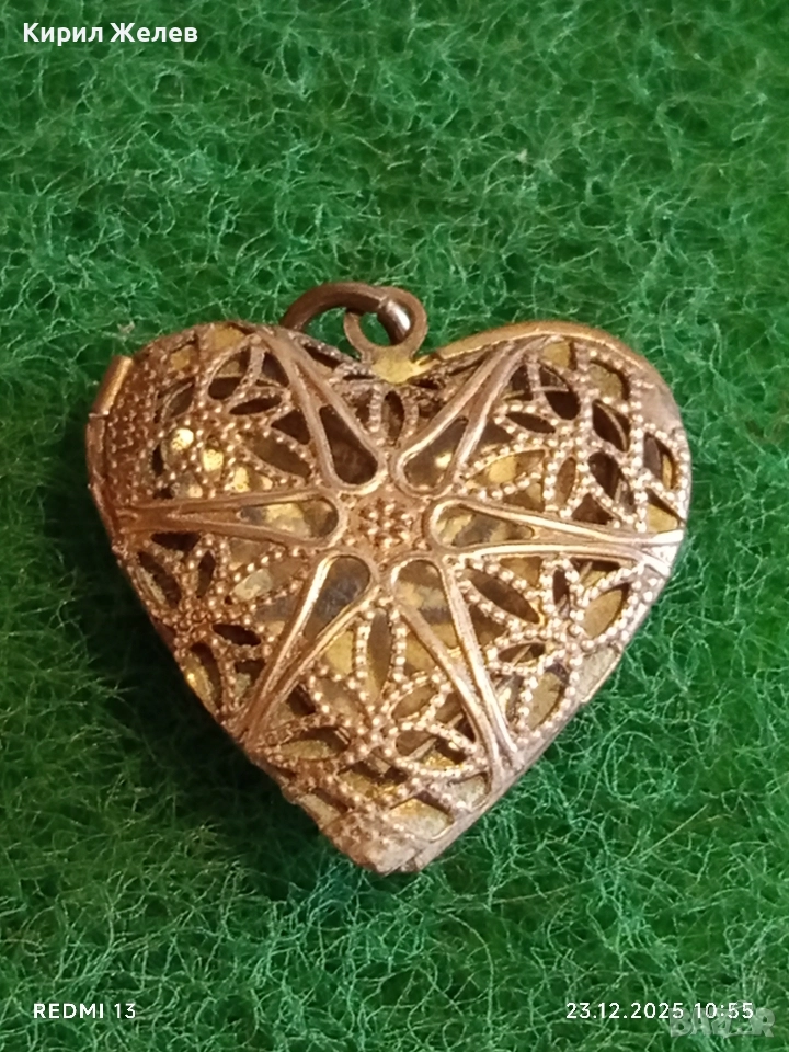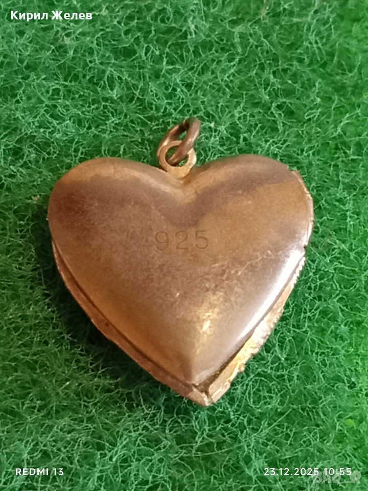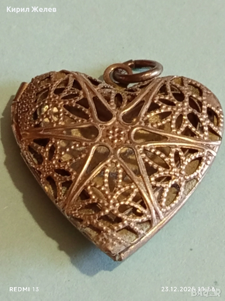 Винтидж сребърен медальон във формата на сърце филигранна изработка за съхранение на спомен 43287