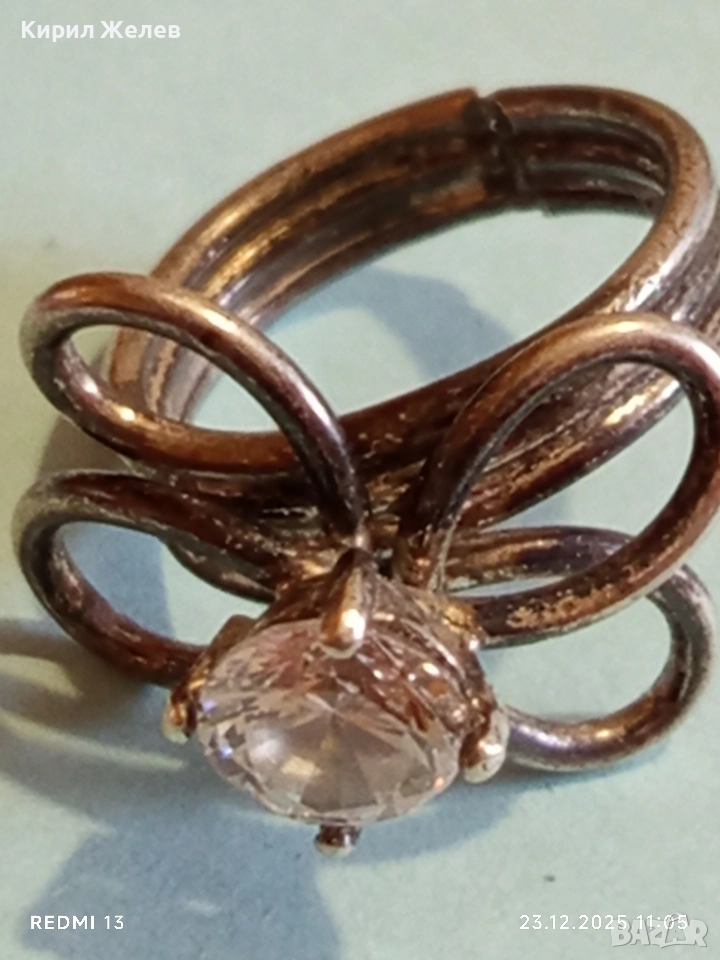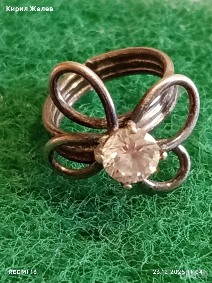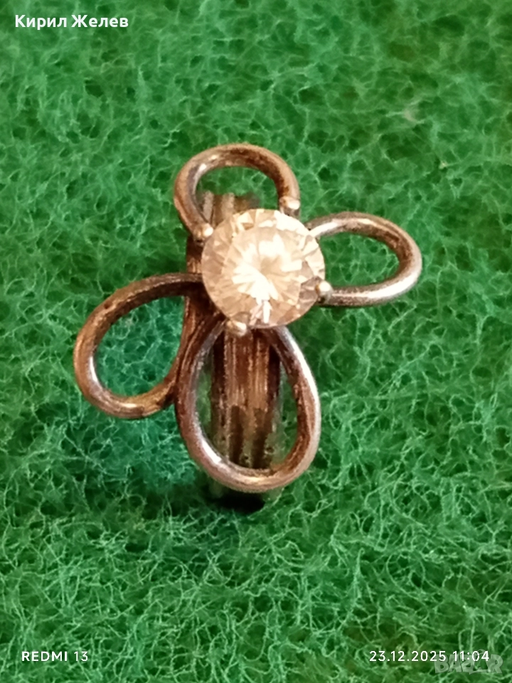 Сребърен пръстен с флорален мотив и инкростиран цирконий ръчна изработка 51797