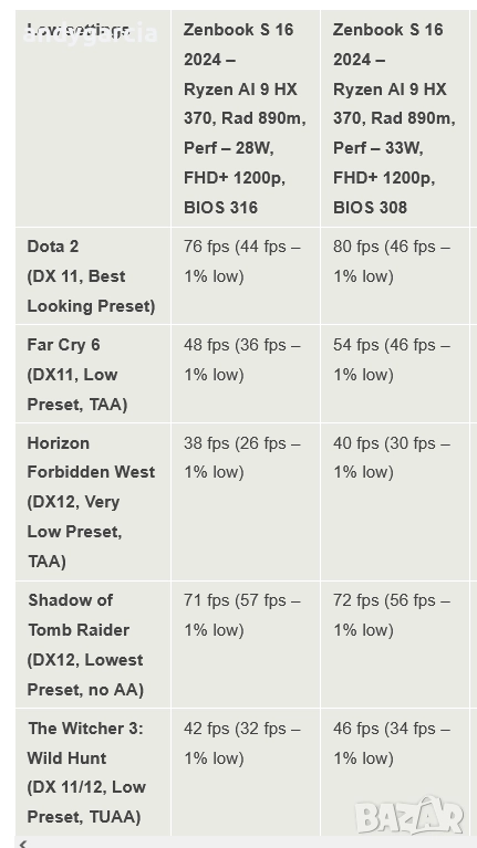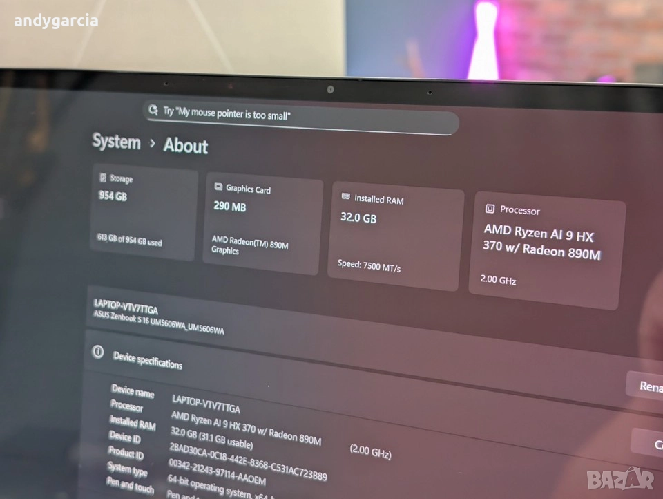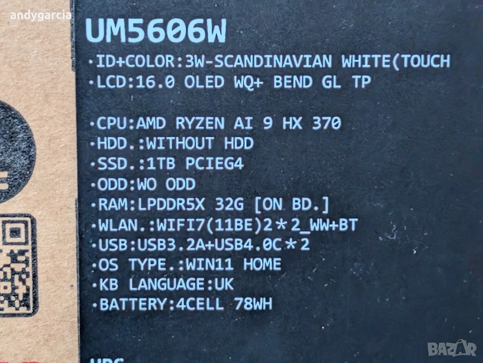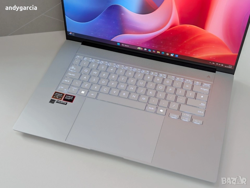 възможности с AI от ново поколение, въпреки свръхтънкия си корпус. Той е оборудван с процесор AMD Ryzen™ AI 9 HX 370 с до 32 GB бърза RAM памет и 1 TB PCIe® 4.0 SSD диск. Процесорът може да достигне TDP от до 28 вата и е оборудван с вграден Ryzen AI енджин, който пък осигурява до 50 TOPS енергийноефективна производителност за съвременните приложения за AI, което на свой ред помага на батерията от 78 Wh с висок капацитет да