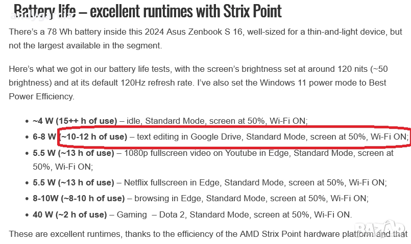 - батерия в прекрасно здраве и живот до 10-12 часа РЕАЛНИ – text editing in Google Drive, Standard Mode, screen at 50%, Wi-Fi ON
