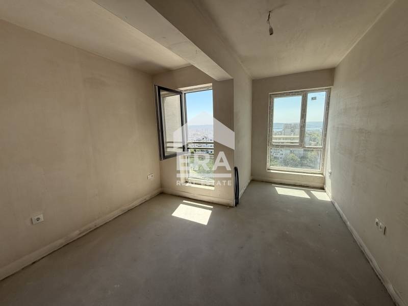 ЕКСКЛУЗИВНО! ДНЕВНА С КУХНЕНСКИ БОКС, ТРИ СПАЛНИ, ДВЕ БАНИ, ЮГ/ИЗТОК, МОРСКА ПАНОРАМА, ГОЛЯМА ТЕРАСА, С АКТ 16! ЕРА Варна Тренд предлага за продажба просторен четиристаен апартамент със застроена площ 143,18 кв.м (174,12 кв.м с общите части), разположен на девети етаж от общо 11 етажа, в нова жилищна сграда във Възраждане - Блок 166. Имотът се състои от дневна с кухненски бокс (17,28 кв.м), три спални (12,47 кв.м, 11,97 кв.м и 11,14 кв.м), едната със собствена баня с тоалетна и излаз на балкон (3,75 кв.м), голяма тераса (55,86 кв.м) към дневната и едната спалня, входно антре (7,67 кв.м), втора баня с тоалетна (5,19 кв.м) и прилежащо мазе (2,4 кв.м). Изложението е юг/изток. Открива се красива морска панорама.