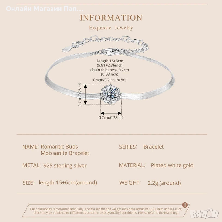 Гъвкавата верижка тип „змийска оплетка“ и регулируемата дължина осигуряват удобство при носене – идеален избор за сватби, годишнини и специален подарък.