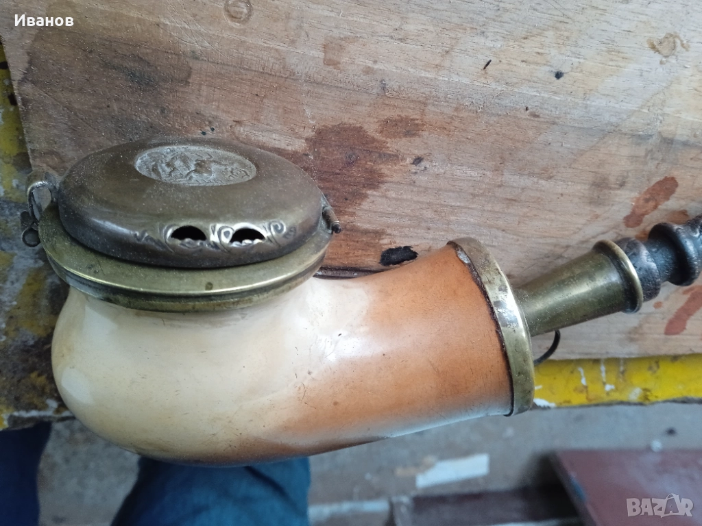 Лула от морска пяна на около 150 години. Дървеният димоотвод и мундщука(за 9мм филтър) съм ги правил аз, за да може лулата, освен част от колекция да стане и годна за пушене. Главата и обковката са си автентични.