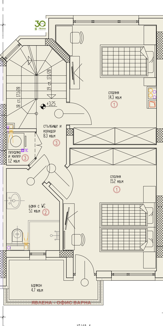 Явлена продава Триетажна къща в Аксаково на 600 метра от Общината. Имотът представлява Всекидневна, санитарно помещение, килер и двор на първо ниво, родителска спалня с балкон, детска спалня, баня и килер на второ ниво, две спални, баня и килер на трето ниво. Достъпът до къщите е изцяло по асфалтов път. Всяка къща е с включено паркомясто в цената и са ориентирани на юг.