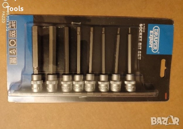 DRAPER EXPERT 8броя 3/8 Дълги Шестогрaми вложки комплект → Обява 52883605