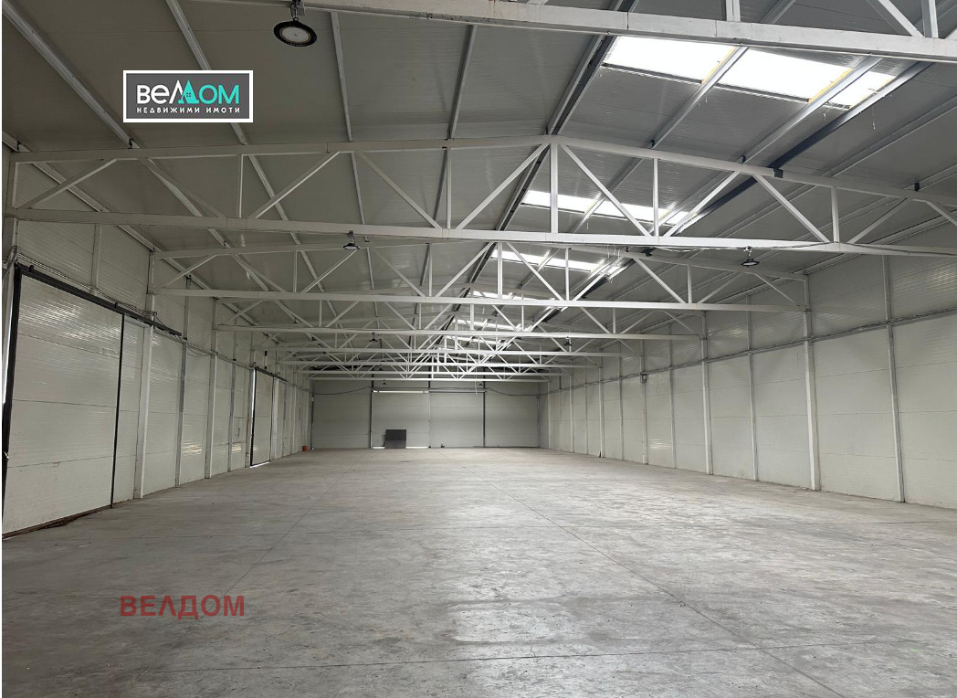 Агенция ВЕЛДОМ дава под наем склад 1000 m2 + офис 100 м2 + ограден двор 3 дка. Метална конструкция, сандвич панели, гладки стени и таван, под-шлайфан бетон, двор- ресан бетон, асфалт и дребнокаменна валирана настилка. Височина на склада 6,00 м, 7,00 м. С големи врати- ролетни щори, на кота нула, тир-подход, санитарни възли. Чисто пространство, без колони.