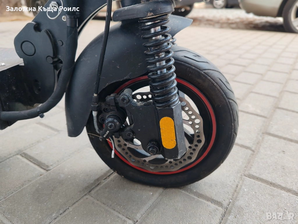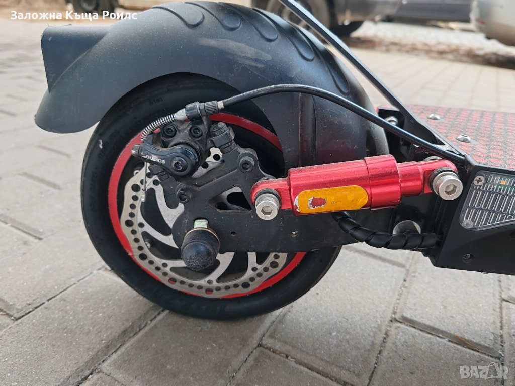 Скутерът разполага с двойни дискови спирачки, 4 режима на скорост и 10-инчови off-road гуми за по-добра стабилност и контрол. Максималното натоварване е 120 kg, а теглото – 23 kg. IPX4 защита го прави подходящ за ежедневна употреба.
