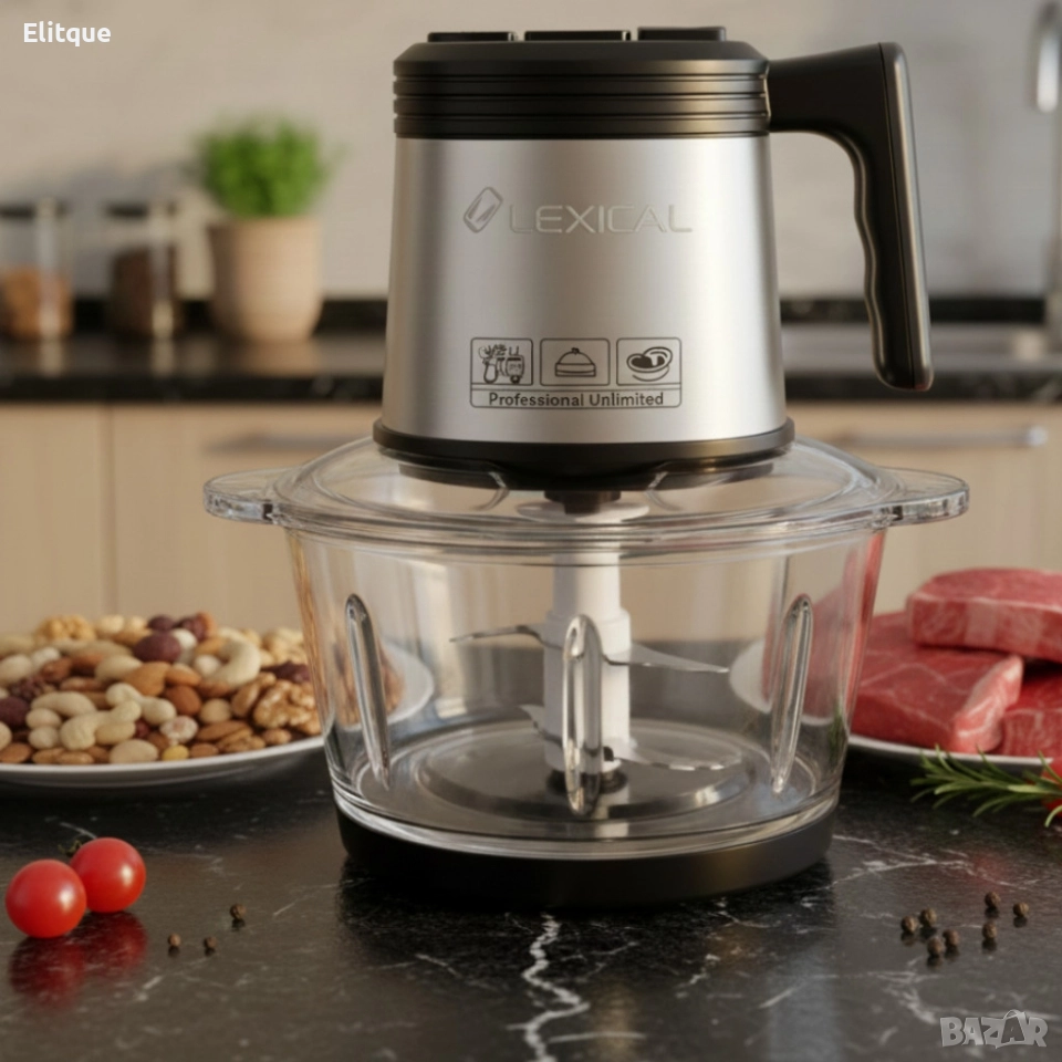 Електрически чопър Lexical LCH-1956 с 6 титаниеви ножа и стъклена купа