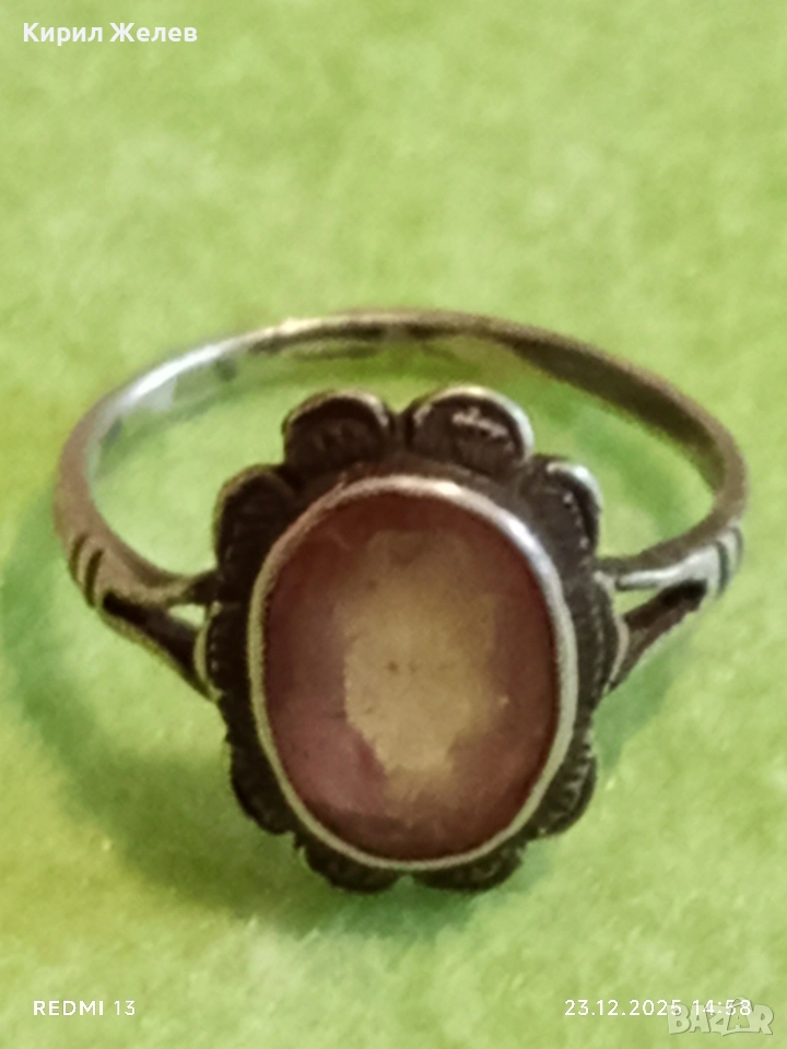 Винтидж сребърен пръстен с ювелирно фасетиран РОЗОВ КВАРЦ стил и елегантност 43515