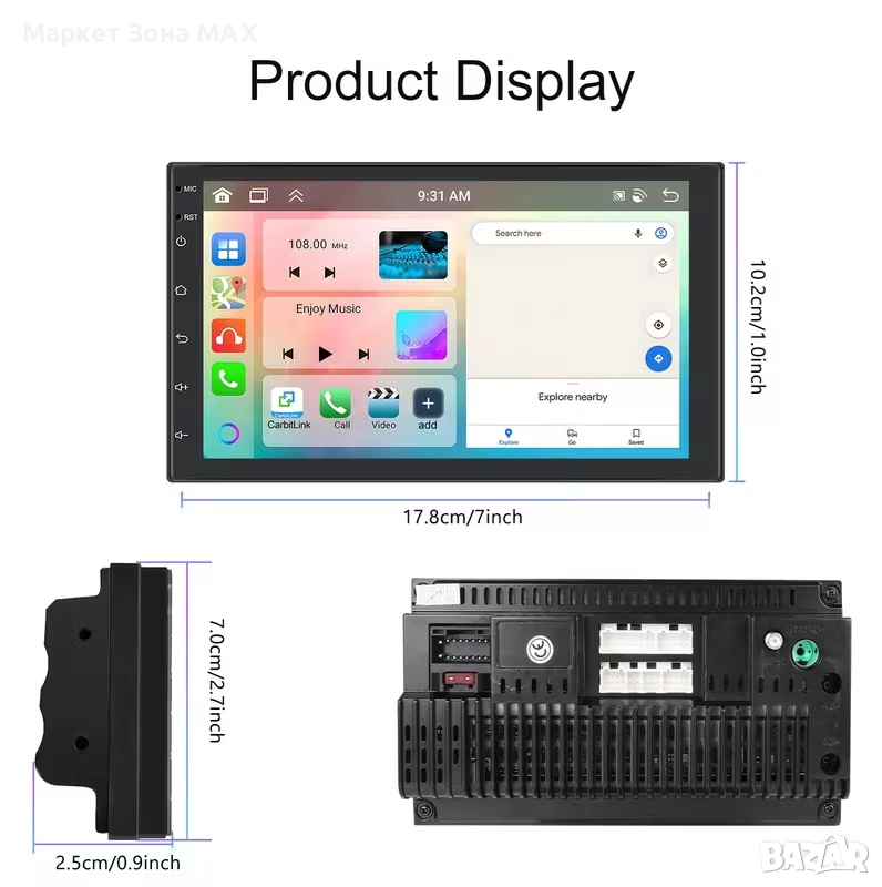 Универсална 2 DIN Android 15 Мултимедия – GPS, CarPlay, Android Auto