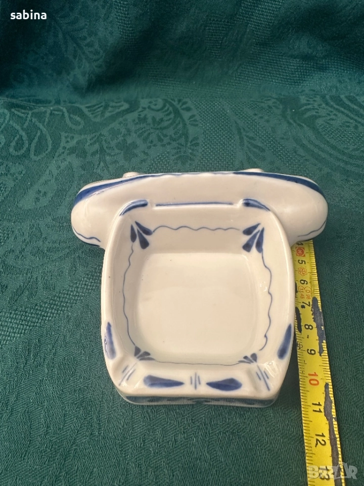 Руски порцелан-Ваза и телефон-пепелник Гжел/Гжель, нови → Обява 52885171