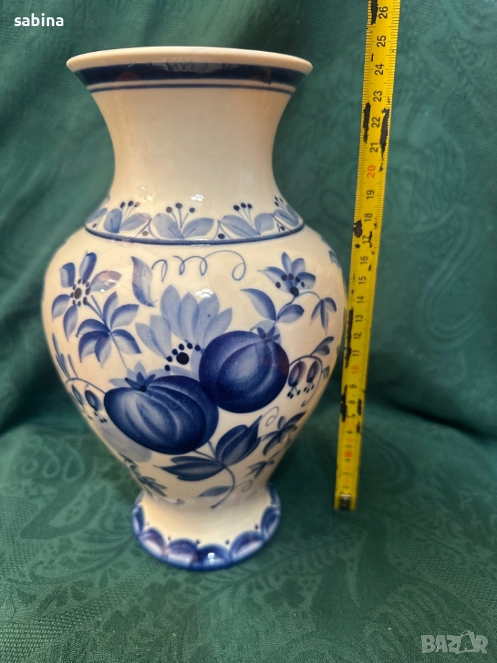Голяма красива ваза Гжел с ръчен кобалтов рисунък “Слива”. Нова. Цена 70 евро