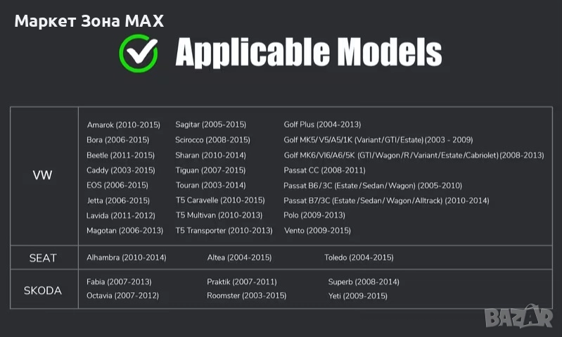 Съвместимост: Подходящо за Volkswagen Passat, Golf, Tiguan, Polo