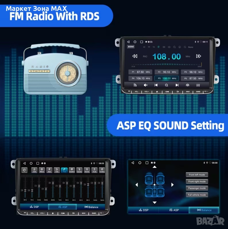 Радио данни система (RDS): RT, AF, TA предоставя цялата необходима информация за FM канала