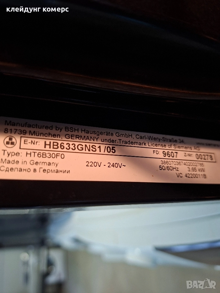 Фурна за вграждане SIEMENS мод.HB633GNS1 → Обява 52885466