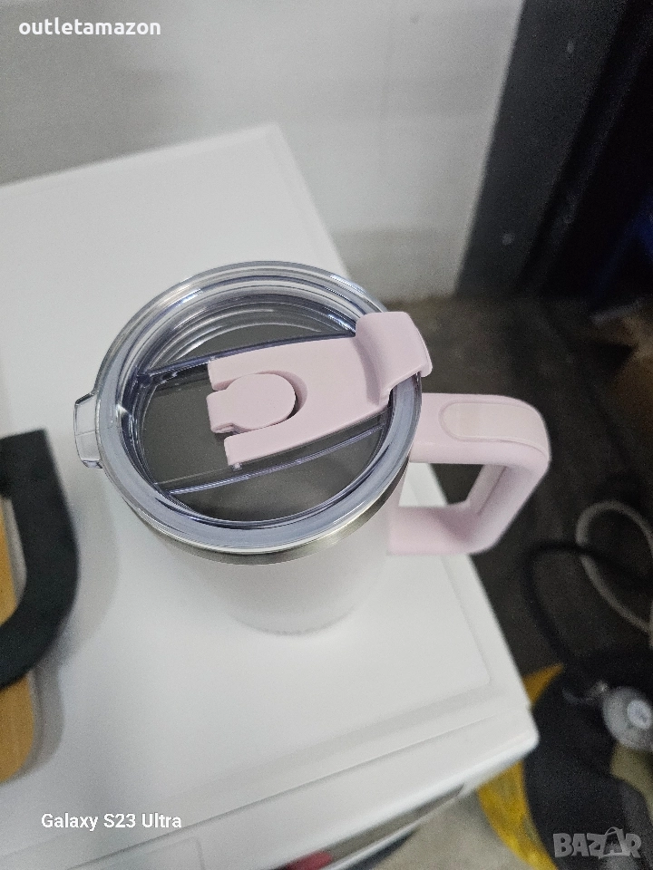 Практична и многофункционална: с практична дръжка осигурява лесно носене и удобно боравене. Капак с отделен отвор за пиене за включената сламка - идеална за из път.