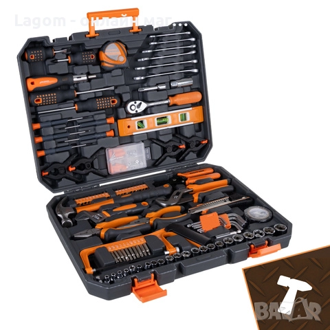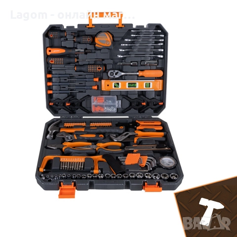 - 168 артикула - всичко, от което се нуждаете, на едно място: накрайници, гаечни ключове, битове - този комплект гарантира пълна готовност за всякакви ремонти , сглобяване на мебели, сервиз на велосипеди, дребни ремонти на автомобили и ежедневни DIY проекти.