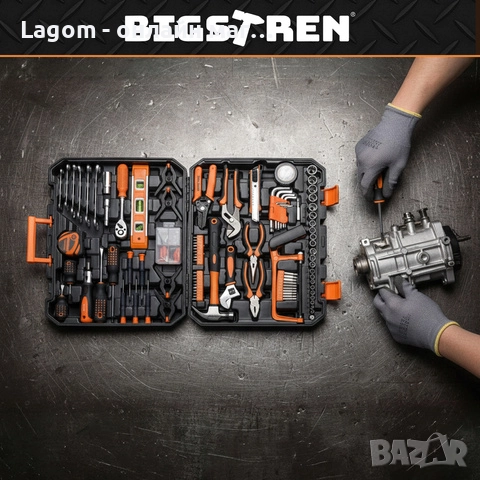 Комплектът Bigstretch 168 бр. съдържа всички най-важни инструменти в един удобен куфар. В него ще намерите гаечни ключове, гайки, битове, отвертки, клещи и аксесоари, с които можете да извършвате домашни ремонти, сглобяване на мебели, автомобилни работи или бързо обслужване на оборудване. Всяка част има свое място в калъфа, което улеснява подреждането. Това е практичен и универсален комплект за любители на DIY и потребители, които искат да имат пълен комплект инструменти винаги под ръка.