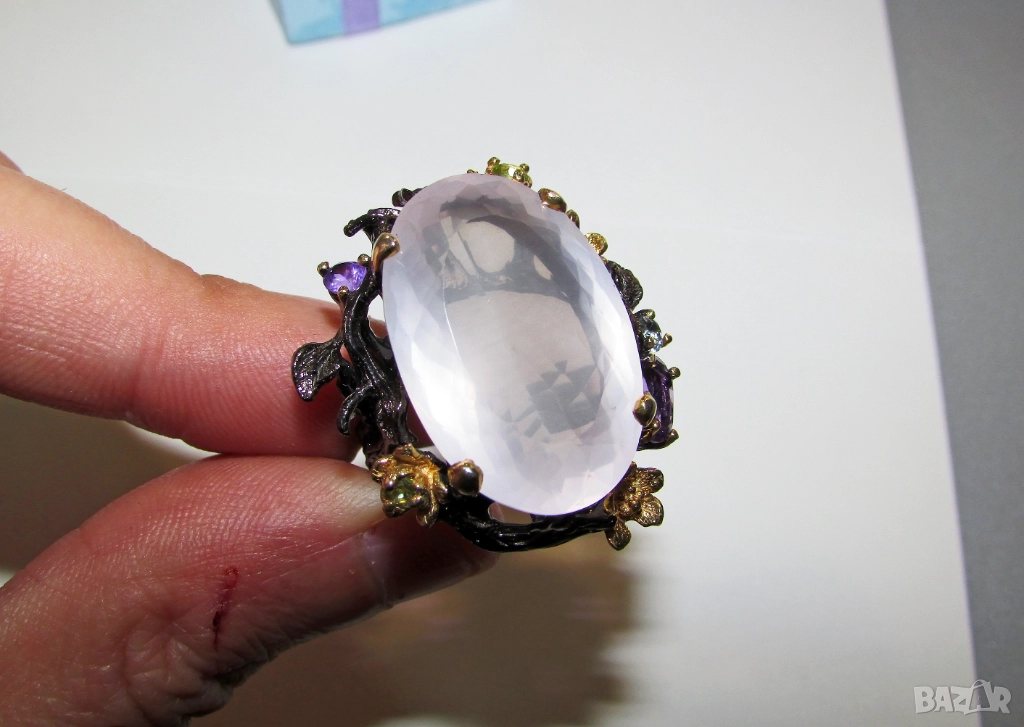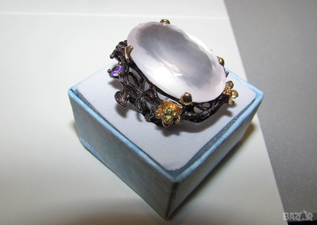 925 сребърен пръстен с 38 карата розов кварц, халка 7/55 → Обява 52886123