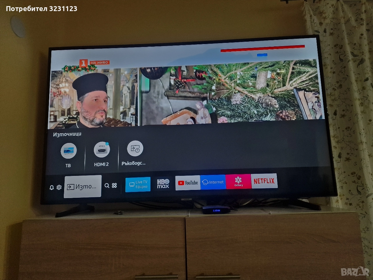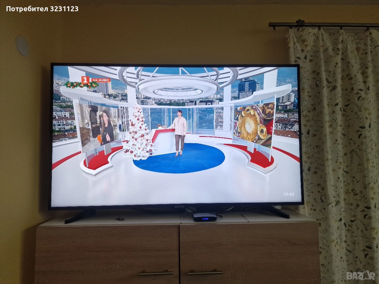 Перфектно състояние. Без драскотини и следи от употреба. Размер на екрана: 55" Вид на екрана: Flat Технология: LED Резолюция : 3840 x 2160 пиксела Smart функция: Smart Динамичен контраст: Mega Contrast Честота: 1 300 PQI Тунер: DVB-T2CS2 Аудио: 20W, 2CH, Dolby Digital Plus, Multiroom Link Мрежа: Ethernet Безжична мрежа: WI-FI Built in Изводи за свързване: 2 HDMI, 1 USB, Digital Audio Out, RF in, CL slot, Anynet+ Енергиен клас: A Консумация: 105 W Размери с поставка (ш x д x в): 123.9 x 24.2 x 75.7 cм