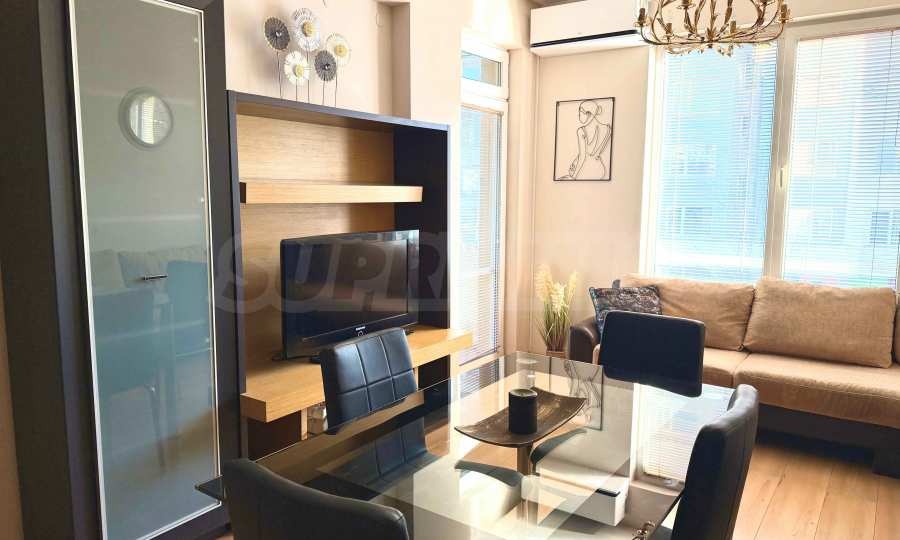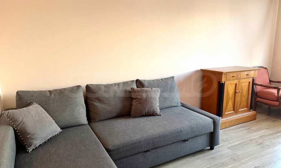 Апартаментът разполага с две самостоятелни спални, просторна дневна, както и допълнителна стая, която може да бъде обособена по преценка на наемателя като трета спалня или кабинет. Санитарните помещения включват баня с тоалетна, както и отделна тоалетна, което допринася за удобството при ежедневно ползване. Жилището е в много добро общо състояние, с висок клас електроуреди, южно изложение, осигуряващо отлична светлина и топлина през целия ден. Отоплението е посредством централно парно, като за допълнителен комфорт са налични и климатици във всички основни помещения. Към имота има и мазе.