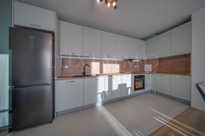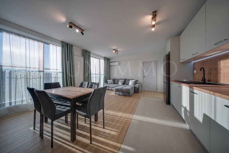 Апартаментът е напълно обзаведен и оборудван с нови мебели и електроуреди, с функционално разпределение и светли помещения. В имота не е живяно досега всичко е чисто ново и неизползвано, подготвено за първи наематели.