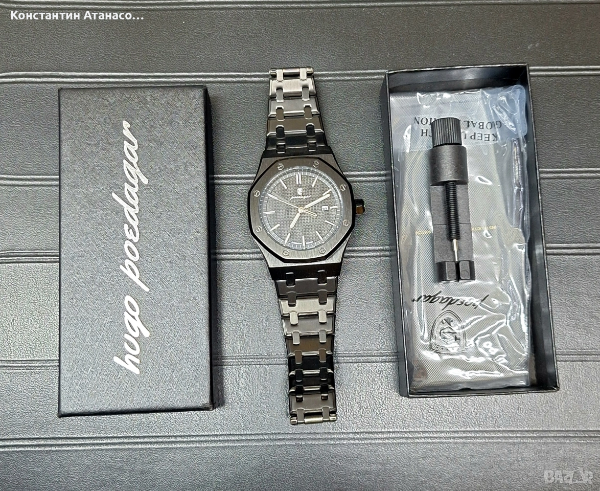 Мъжки часовник Poedagar CS1858, неръждаема стомана, черен, черен циферблат.цена 15 евро