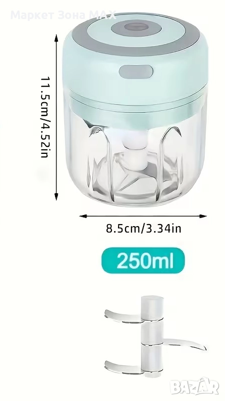 Капацитет 250 мл, преносим USB с регулируемо зареждане, бързо настъргване, подходящ за лук, чили, целина.