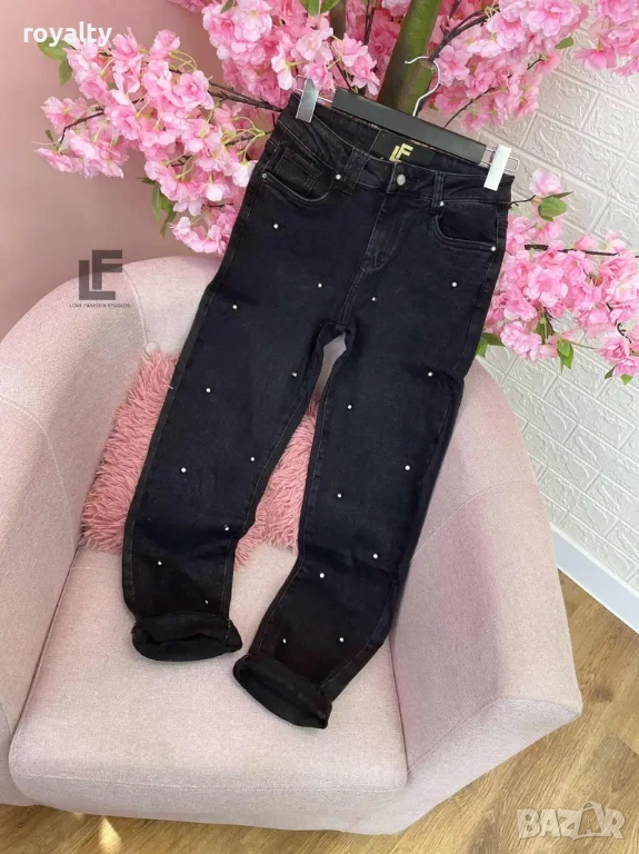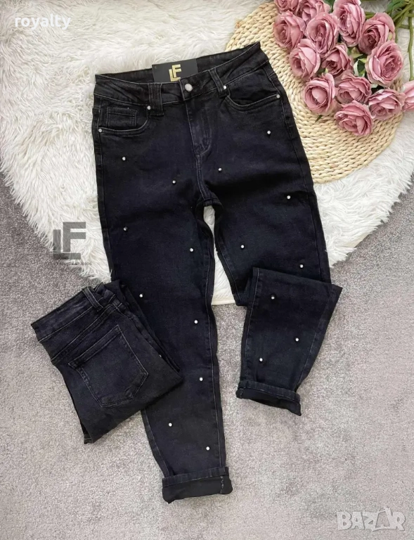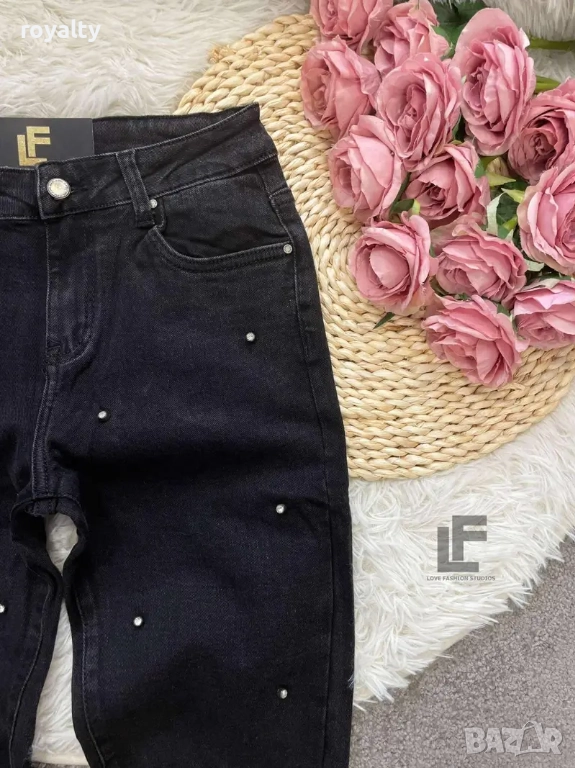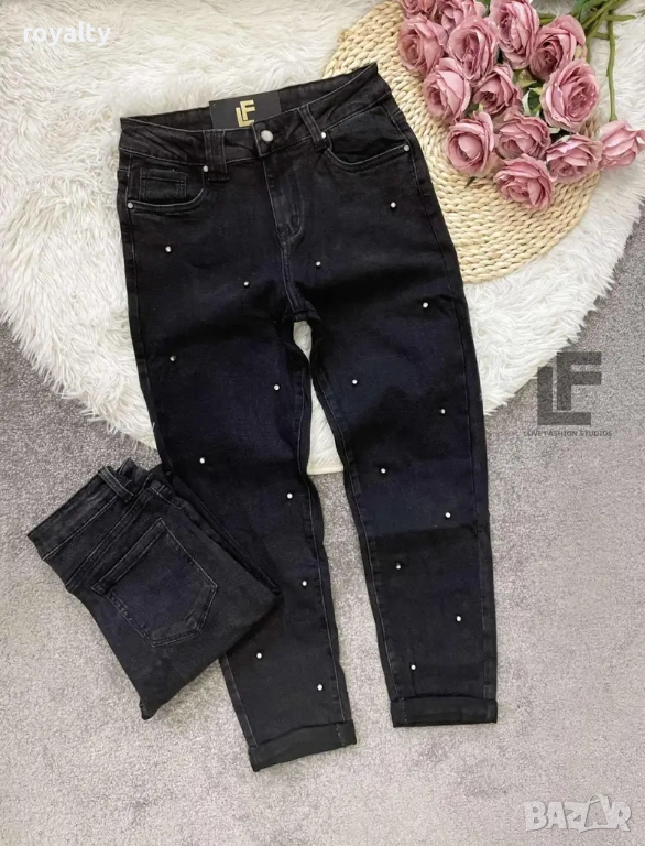Кройка: Кройката е тип “Mom’s” с висока талия и стесняващи се крачоли и декорирани с камъчета