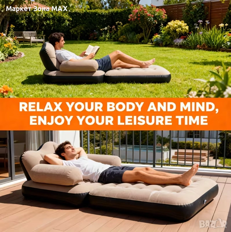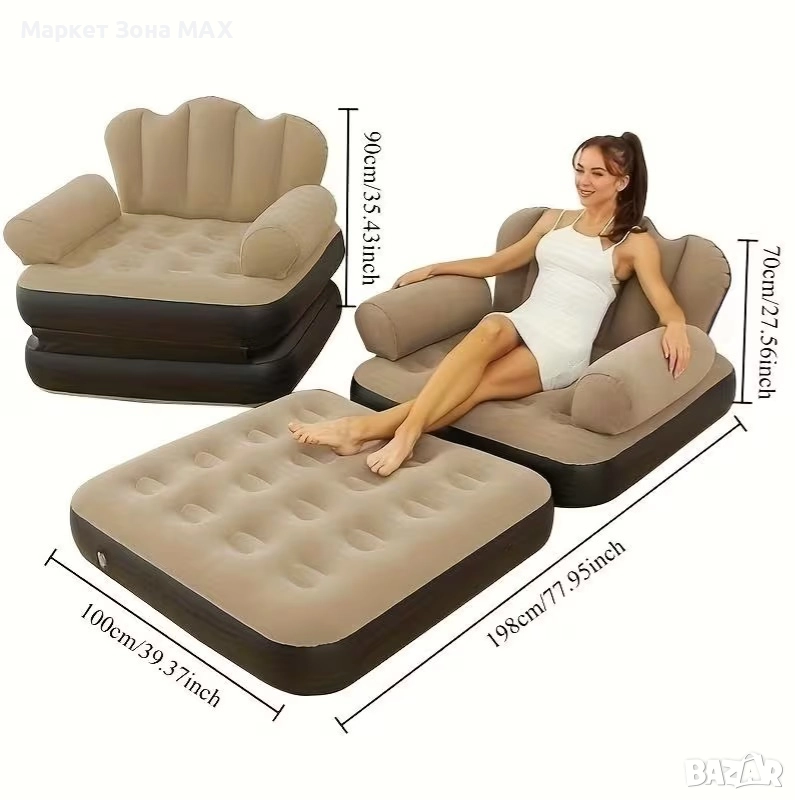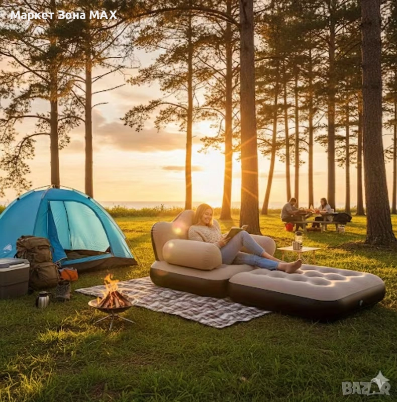 Мек и удобен преносим надуваем къмпинг фотьойл 5 в 1, създаден за пълен комфорт на открито.