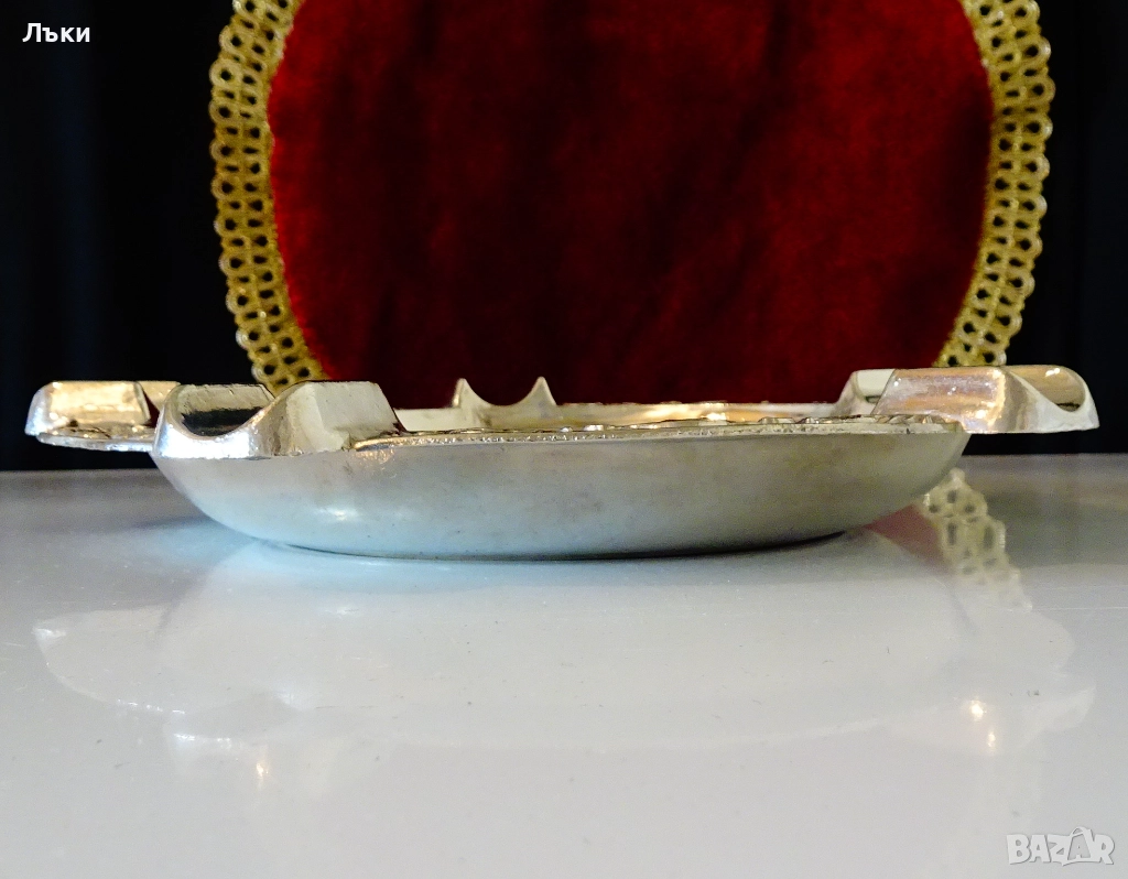 изработка от масивен бронз,дебело посребрен с висока проба сребро,родиран за