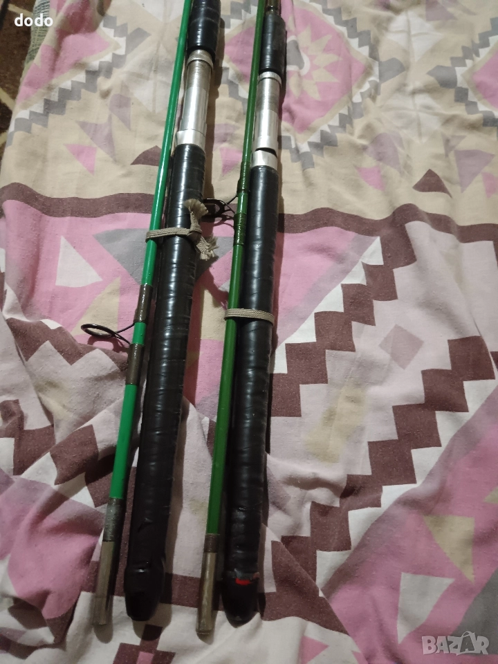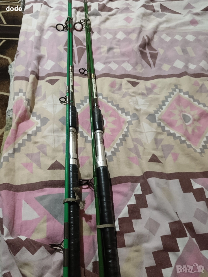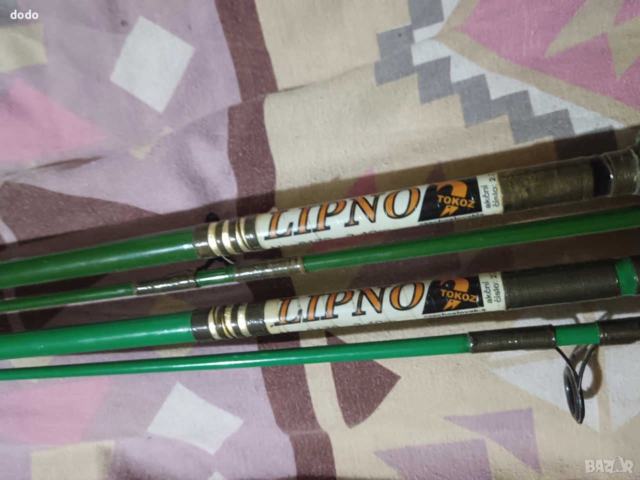 два броя оригинални чешки въдици tokoz lipno 2.40m в перфектно състояние с сменени сикови водачи с коркови дръшки облечени с скоч да се запази корка цена за брои твърда цена