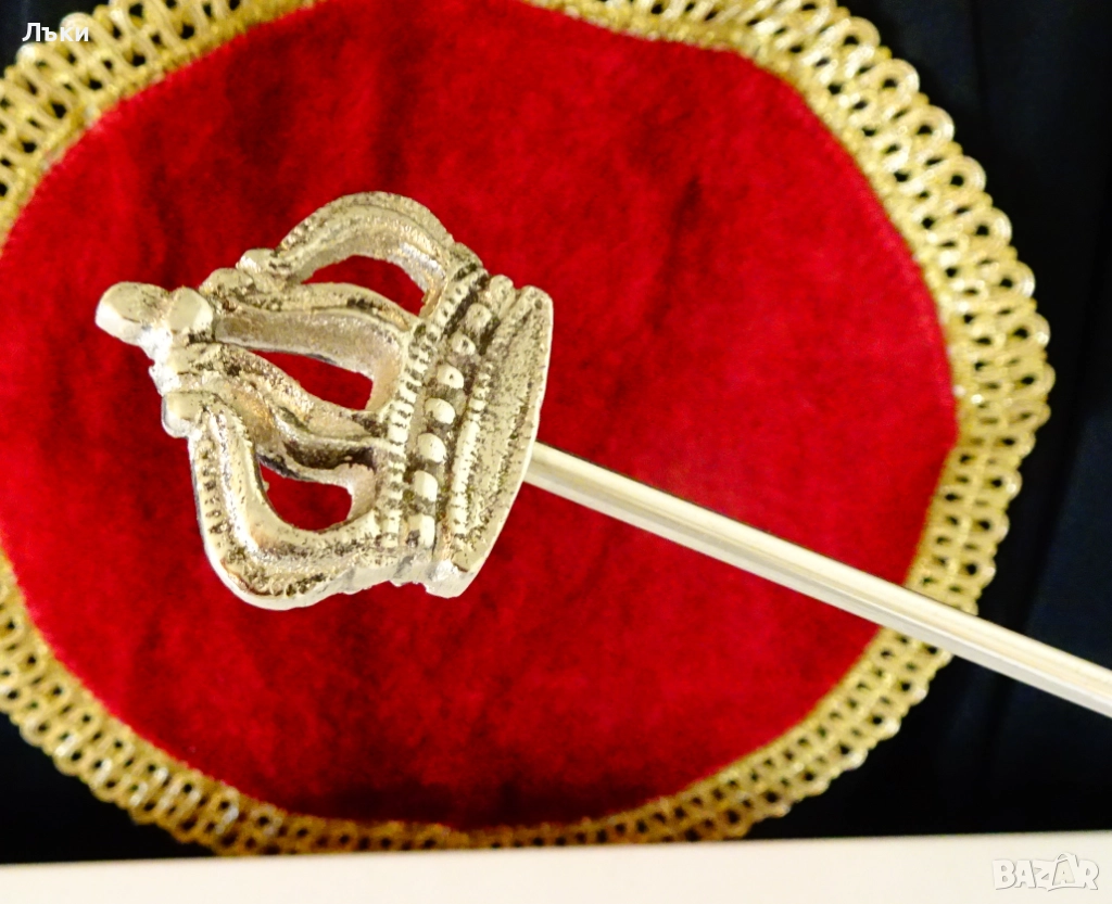 трайност.Декориран с релефна кралска корона.Дължина 28 см.,диаметър на чашката