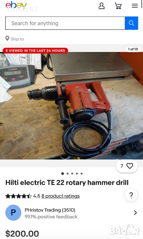 Продавам електрически перфоратор на Хилти от старото качество, много здрава и надеждна машина. Перфоратор е в отлично визуално състояние и работи перфектно. Made in Liechtenstein внос от Франция. Обявената цена включва машината с ръкохватка и оригинален куфар. Пращаме с преглед и тест с куриерска фирма еконт може и лично предаване за гр. Шумен. В eBay се продава за 200долара