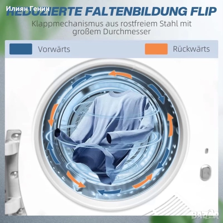 Иновативен дизайн: С механизъм за сгъване от неръждаема стомана с голям диаметър и въртене напред/назад, този вентилиран сушил намалява гънките и осигурява ефективен процес на сушене и по-лесно гладене.