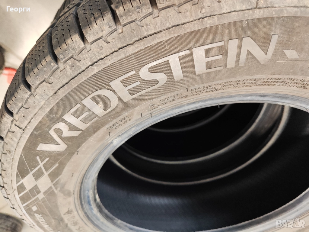 4бр.Vredestein ,215/65/16C, ДОТ 2224, 9,2mm/10,1mm грайфер. Гумите са перфектни, без забележки, проверени са машинно за кривини, балони! Разполагаме с всякакъв размер нова и втора употреба гуми от 14-22 цола за автомобил, джип и бус.