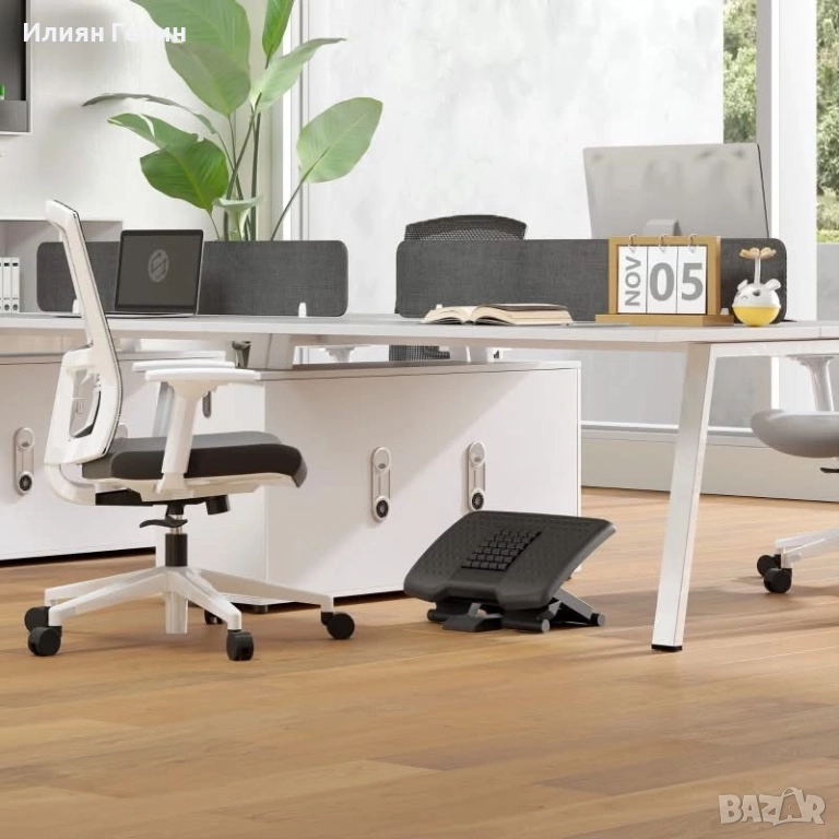Здрава конструкция: Изработена от здрава пластмаса с неплъзгащи се подложки, тази поставка за крака за бюро предотвратява подхлъзване и осигурява надеждна опора. Предлага се предварително сглобена и готова за употреба.