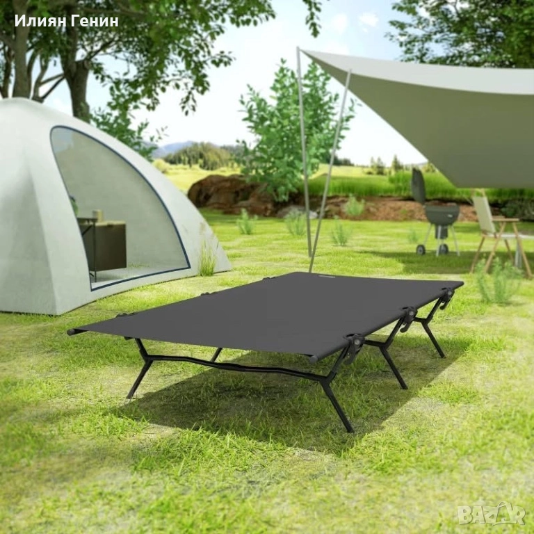 походно легло Outsunny с чанта за носене, 200 x 100 x 36 см, до 120 кг, екстра широко, черно - 200.00лв.