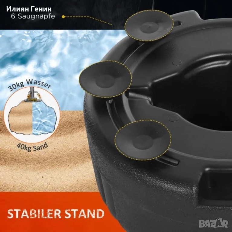 ✔ Основата може да се напълни с вода или пясък.