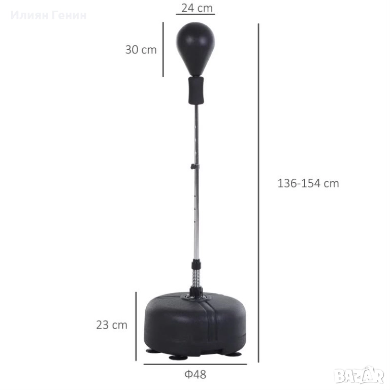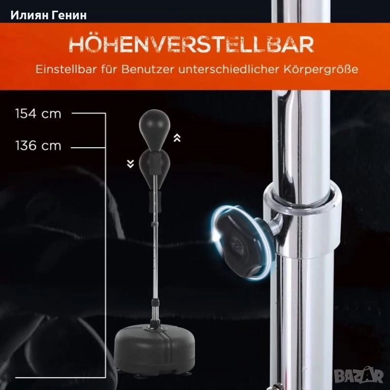 РЕГУЛИРУЕМА: Топката за бокс е подходяща за хора с различен ръст, тъй като височината ѝ може да варира до 136, 142, 148 и 154 см.