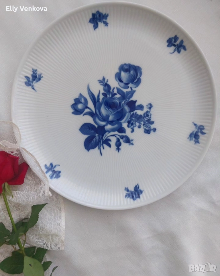 Порцеланово плато Heinrich Residenz Höchst с декор от сини цветя и диаметър 32 см. Цена: 40 лв