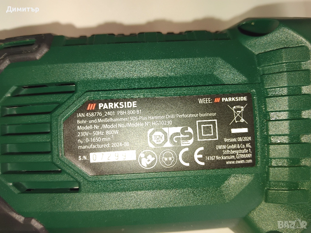 Перфоратор PARKSIDE PBH 800 B1 → Обява 52888414