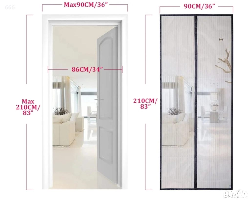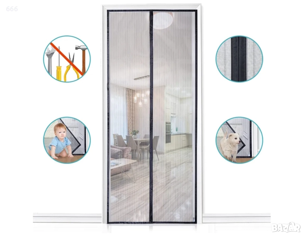 Мрежа завесa, Apalus, с магнит, Защита от насекоми, комари и мухи, десен с линии.