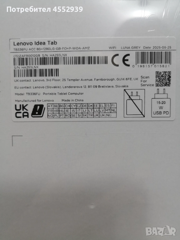 Lenovo Idea Tab 8GB, 128 GB, чисто нов неразопакован, сив, 339 лв
