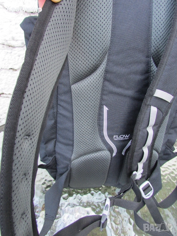 Туристическа раница Berghaus Arrow, с вместимост 30 литра, в перфектно състояние, като нова. Изработена е от здрава полиестерна материя: Esdura 600D RS / Esdura 600D. Разполага с голямо основно отделение, със специално пригоден джоб за хидратираща система с извод, джоб с цип в горната част на капака, с шайба тип карабинка за ключове, странични джобове с ципове, фиксиращи ластици за щеки, удобна дръжка за пренасяне, и вълнообразна лента за закачане на карабинки. На дъното е с джоб със сив дъждобран, покриващ цялата раница. Със система за гръб Berghaus Flow с вентилирана пяна, гарантираща максимално дишане на тялото и комфорт дори при продължително носене. Закопчаването е пред гърдите и кръста, като гръдната презрамка се регулира по височина за намиране на перфектното прилягане. Към раницата в комплект е HARRIER Bivvy Bag