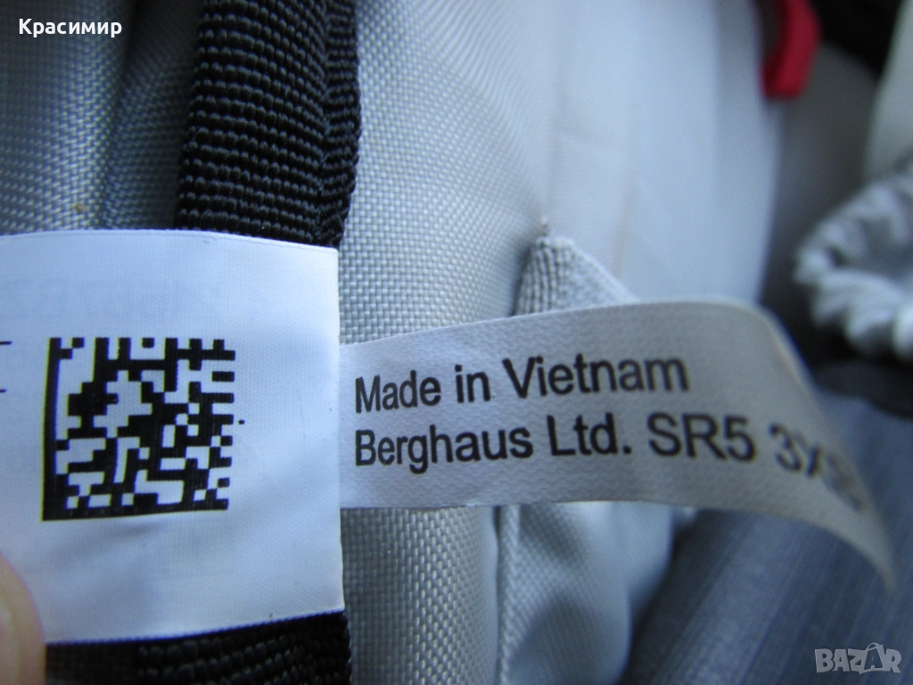 навигационния компас Ordnance Survey за купувани за 30 паунда. Раницата е произведена във Виетнам с QR код за автентичност. Размери: 56 x 39 x 26 см. Цената е без коментар.