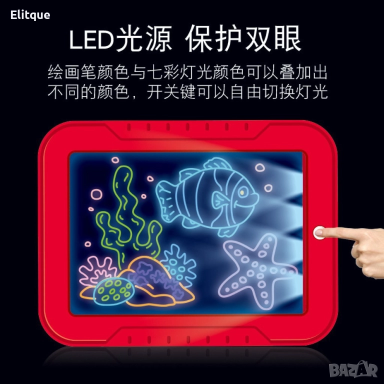 Светещ таблет за рисуване Magic Sketch Pad / 1 х Таблет/ 3 х Двустранни неонови писалки/ 1 х Гъба за