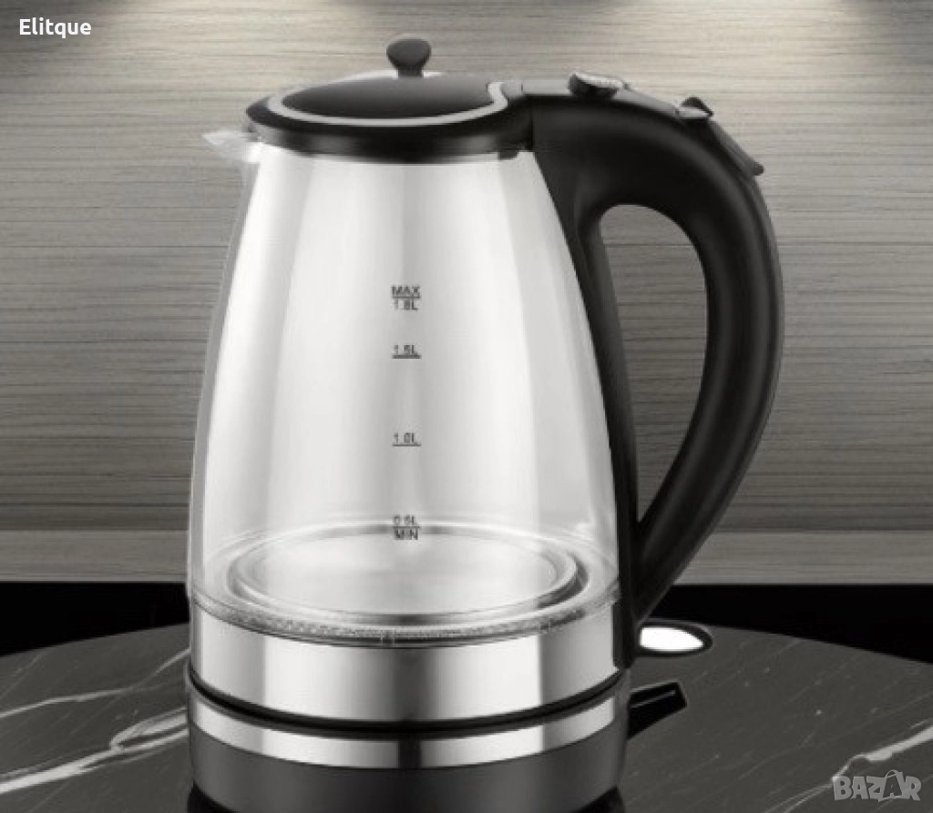Електрическа кана Rosberg, 1800W, 1.8 л, стъклена, Черен, 2 ГОДИНИ ГАРАНЦИЯ