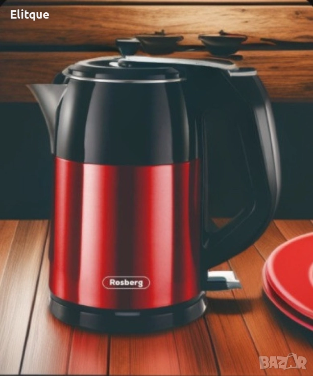 Електрическа кана Rosberg, 1500W, 1.8л., Корпус неръжд. стомана, Червен и черен, 2 ГОДИНИ ГАРАНЦИЯ